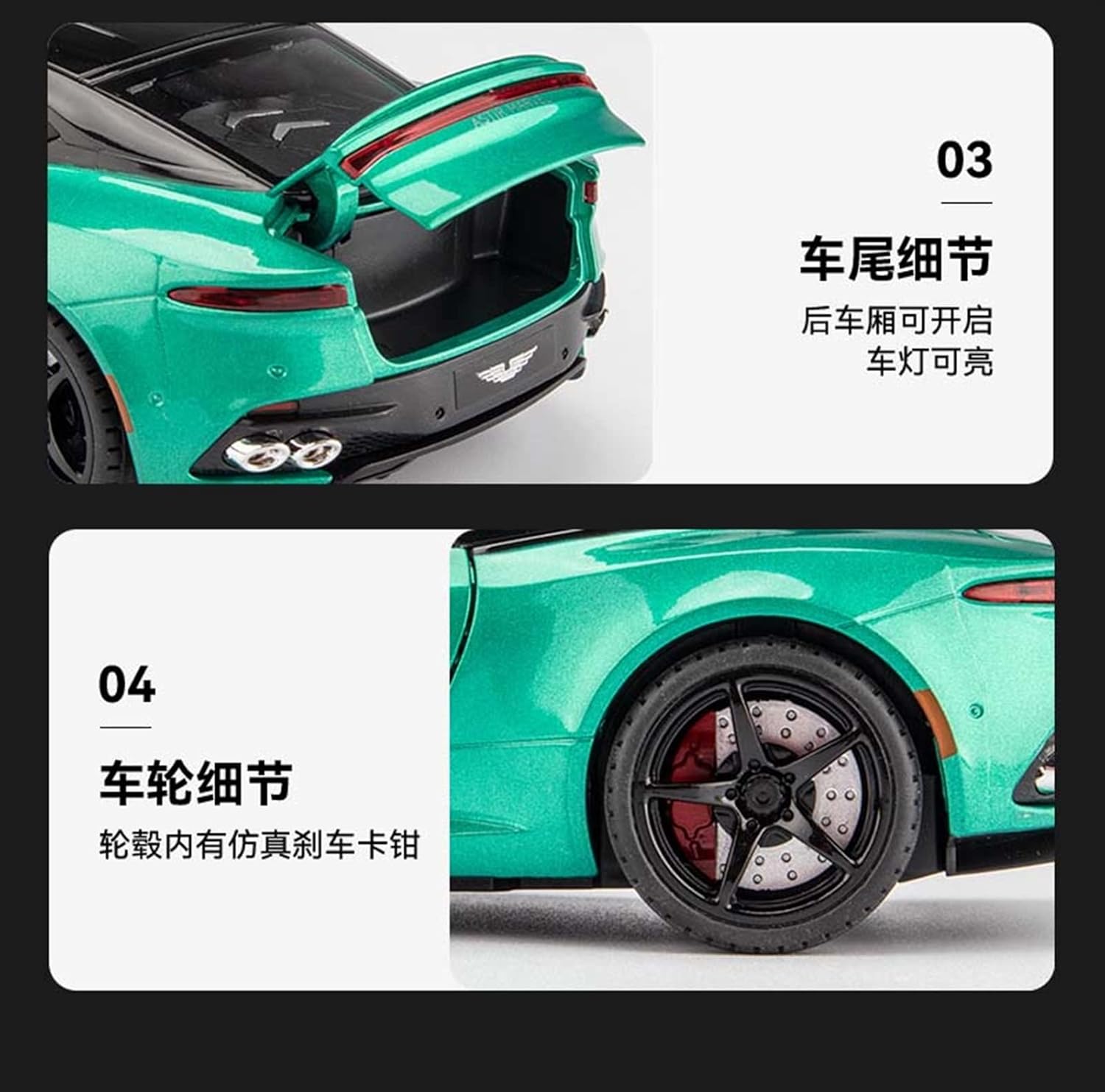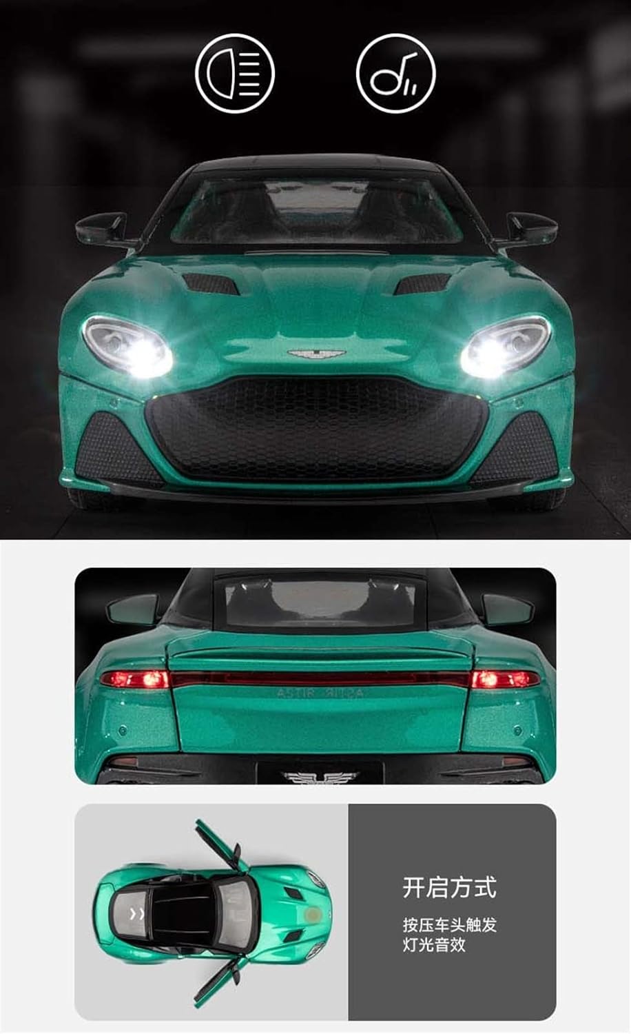 نموذج سيارة أستون مارتن DBS الخارقة المصنوعة من سبائك معدنية مصبوبة بمقياس 1/24، مع باب خلفي وصوت وإضاءة ومحاكاة للسيارة بمقياس 1/24 (3 ألوان)