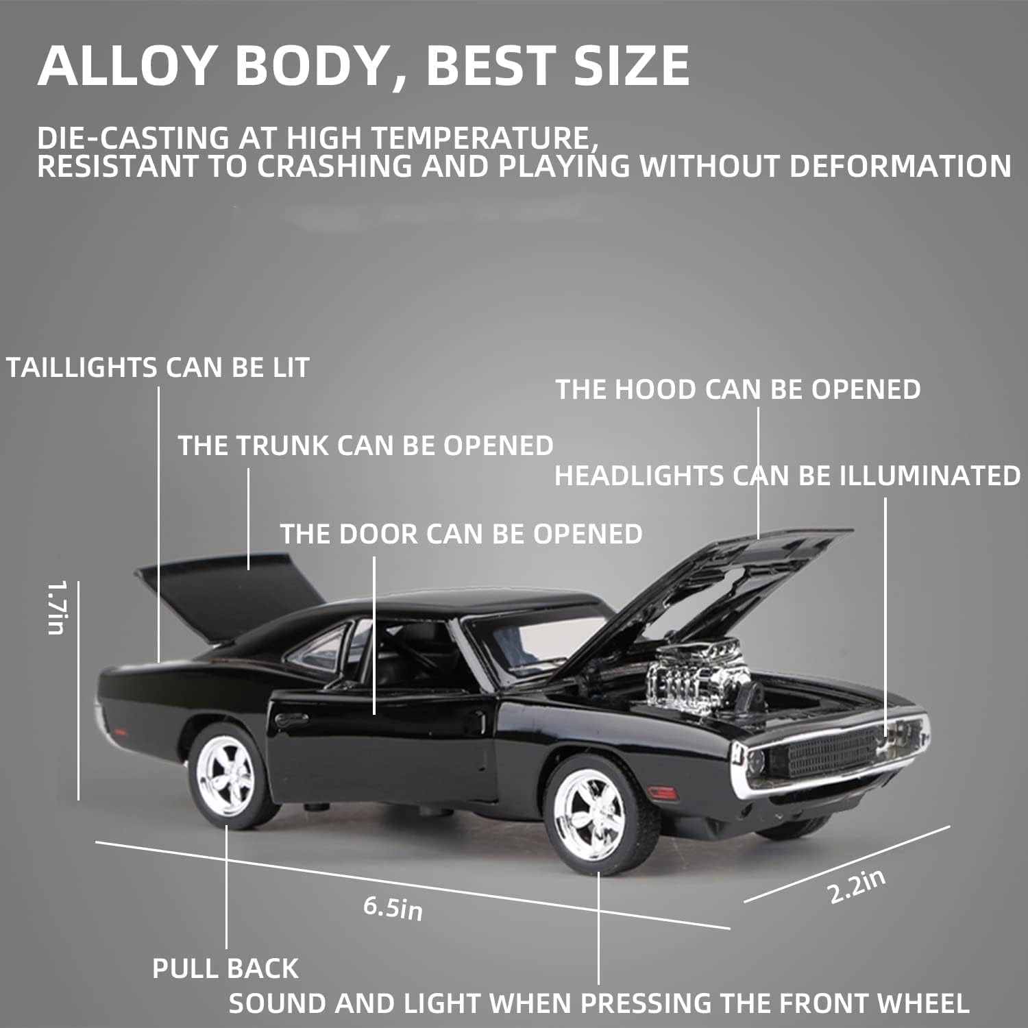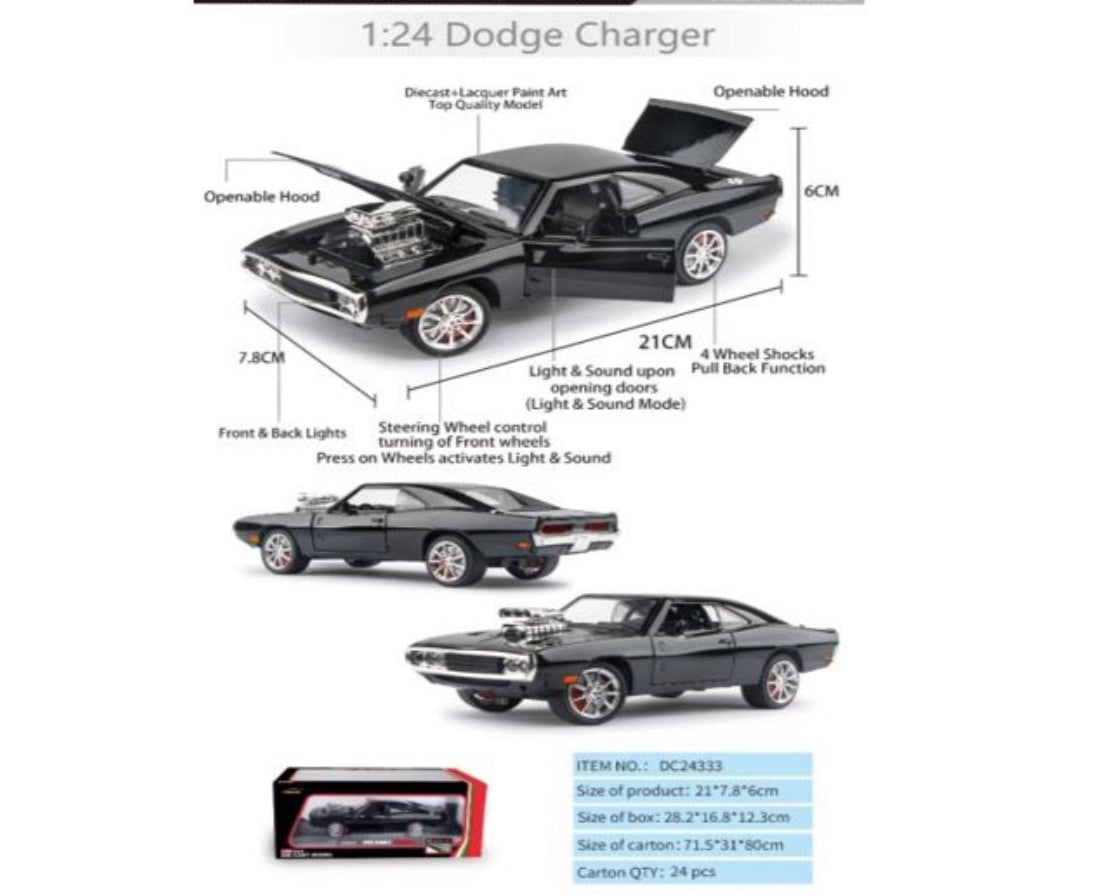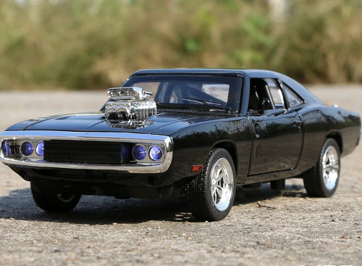 سيارة دودج تشارجر فاست آند فيوريوس 7 بمقياس 1:24، أبواب معدنية قابلة للفتح، أضواء وامضة وموسيقى
