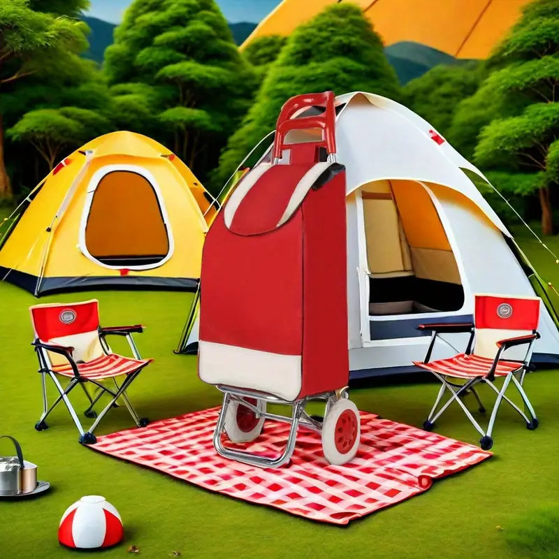 Folding Shopping Cart with Handle, Home Use, Oxford Fabric, Stainless Steel Frame, Outdoor Hand Trolley, Travel Accessory, Camping & Hiking Gear