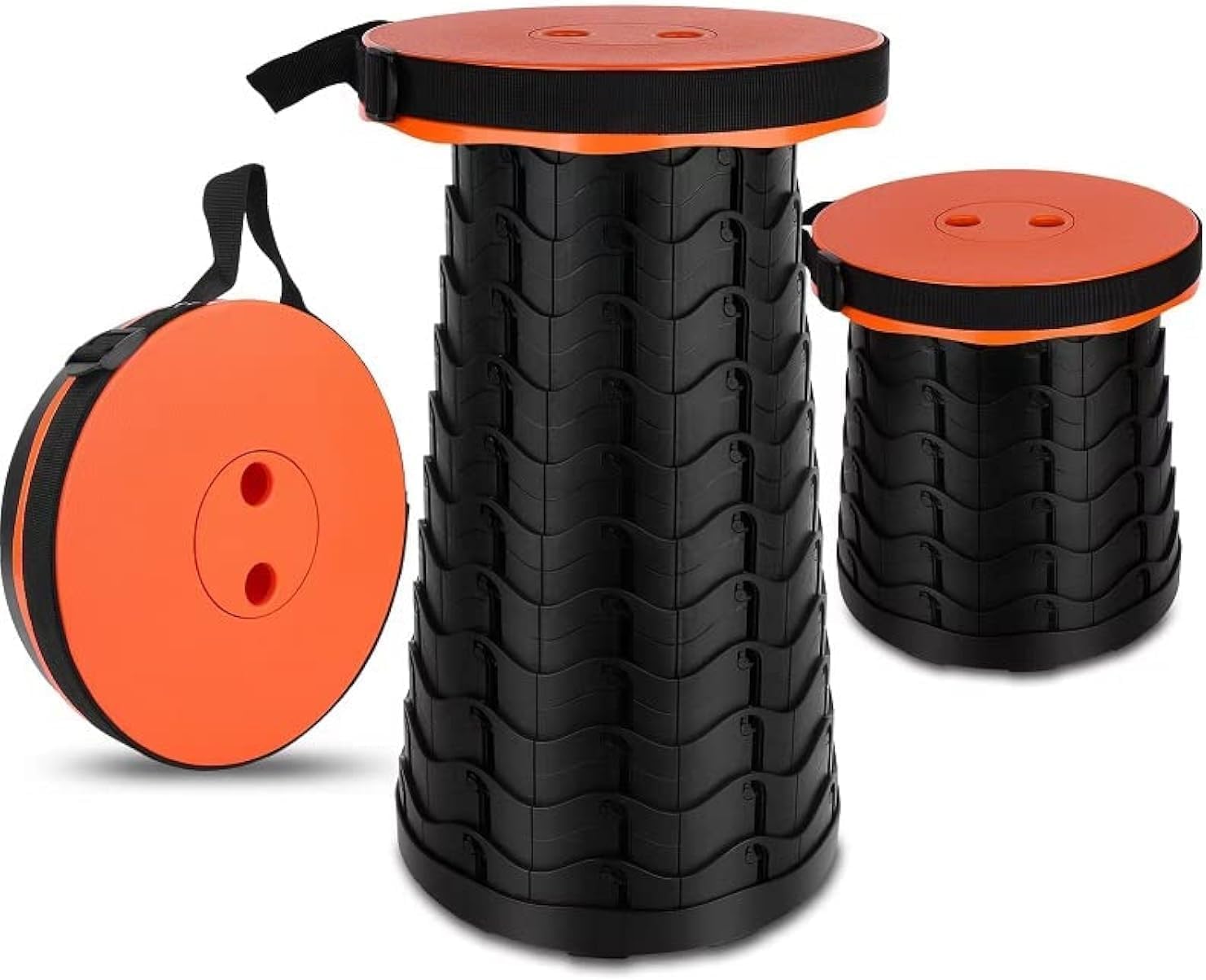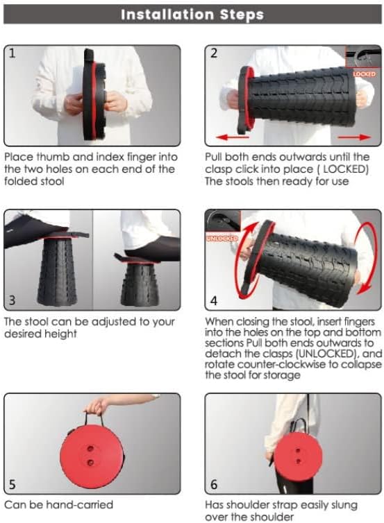 - 【Very Safety and Hight stable】 Made of high-strength heavy duty environmental friendly material plastic PA+ABS, the cylinder shape structure, tight connecting clasps, and the non-slip base ensure that this collapsable stool will give the stability to provide safe and comfortable sitting. The maximum load capacity is as much as 150kg/330Lbs! ATTENTION: Please sit in the center of the seat. DO NOT sit on the edge of the seat. DO NOT tilt the stool.not sweep down!