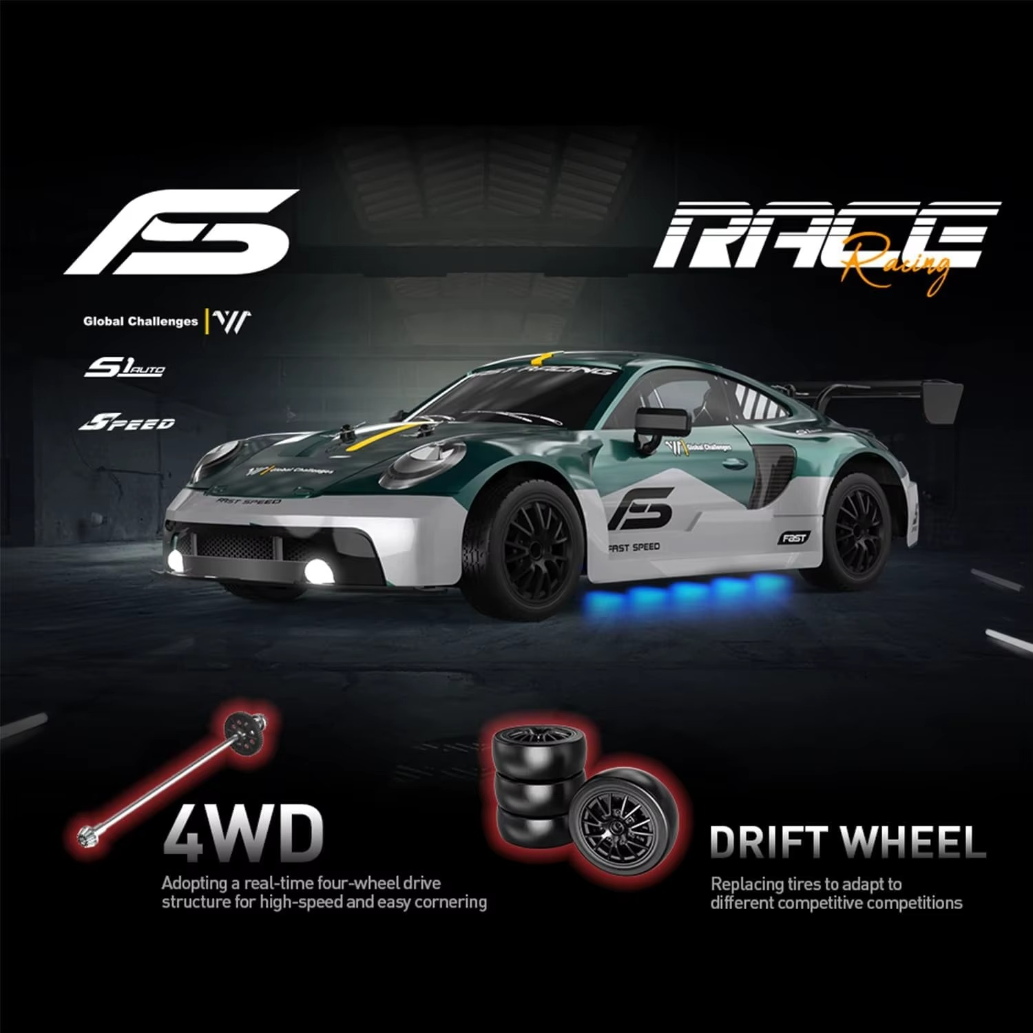 Multi-functional Drift RC Car:This RC drift car is designed with four-wheel drive system, equipped with four-wheel drive system and high-power motor, with strong power and driving force. Equipped with replaceable racing and drifting tires, it allows you to easily switch between high speed races and drifting races.