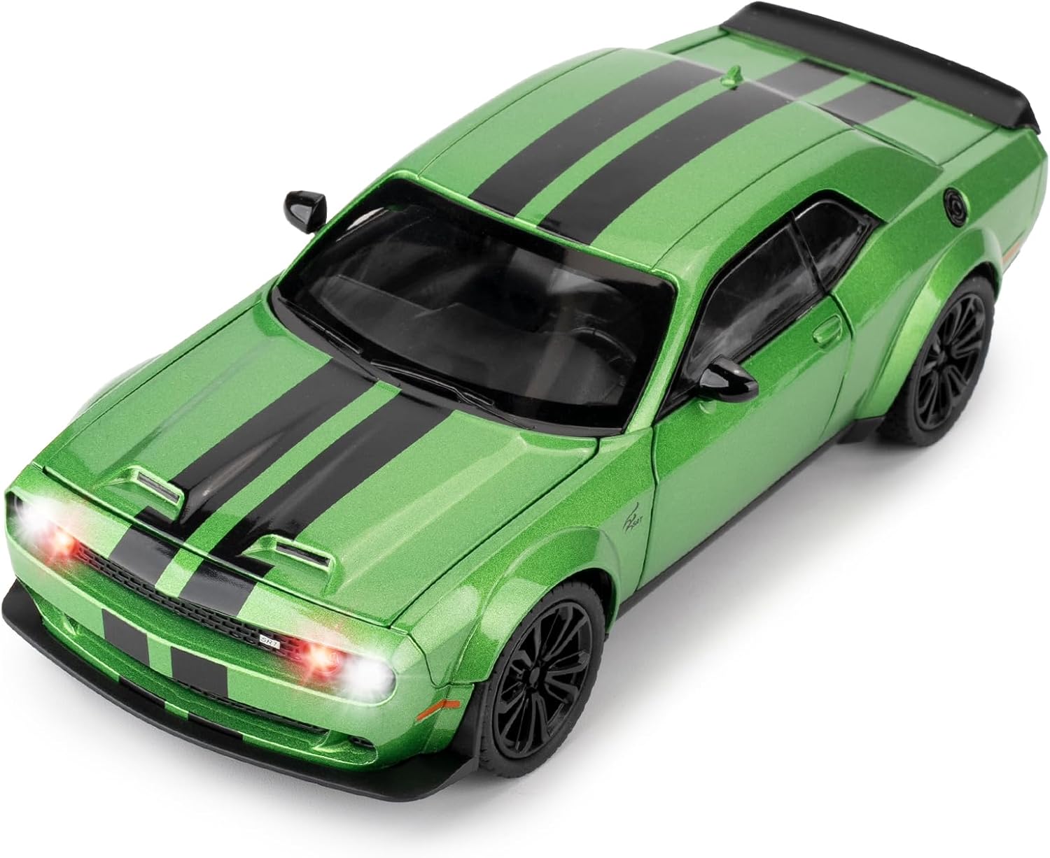 Haizol Dodge Challenger SRT Hellcat Car Model, 1:22 Die-Cast Toy Car with Sound and Light, Pull Back Model Vehicle